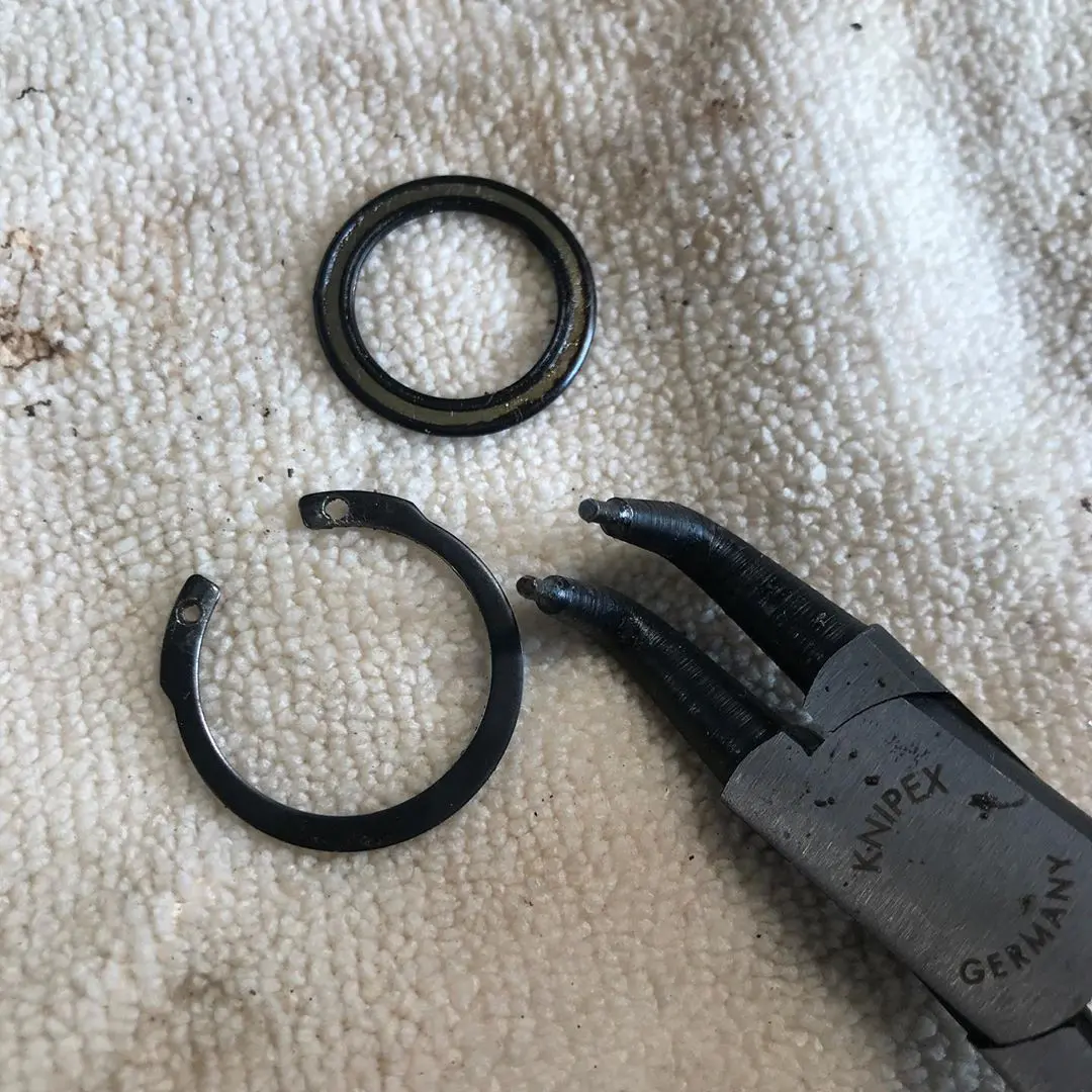 From S.E.S wheel pulley. Apparently, the c-clip holes were small so I had to drill it in order for the tool to do its job. 🤷♀️#gennomorestrength #ebikes #haibikes